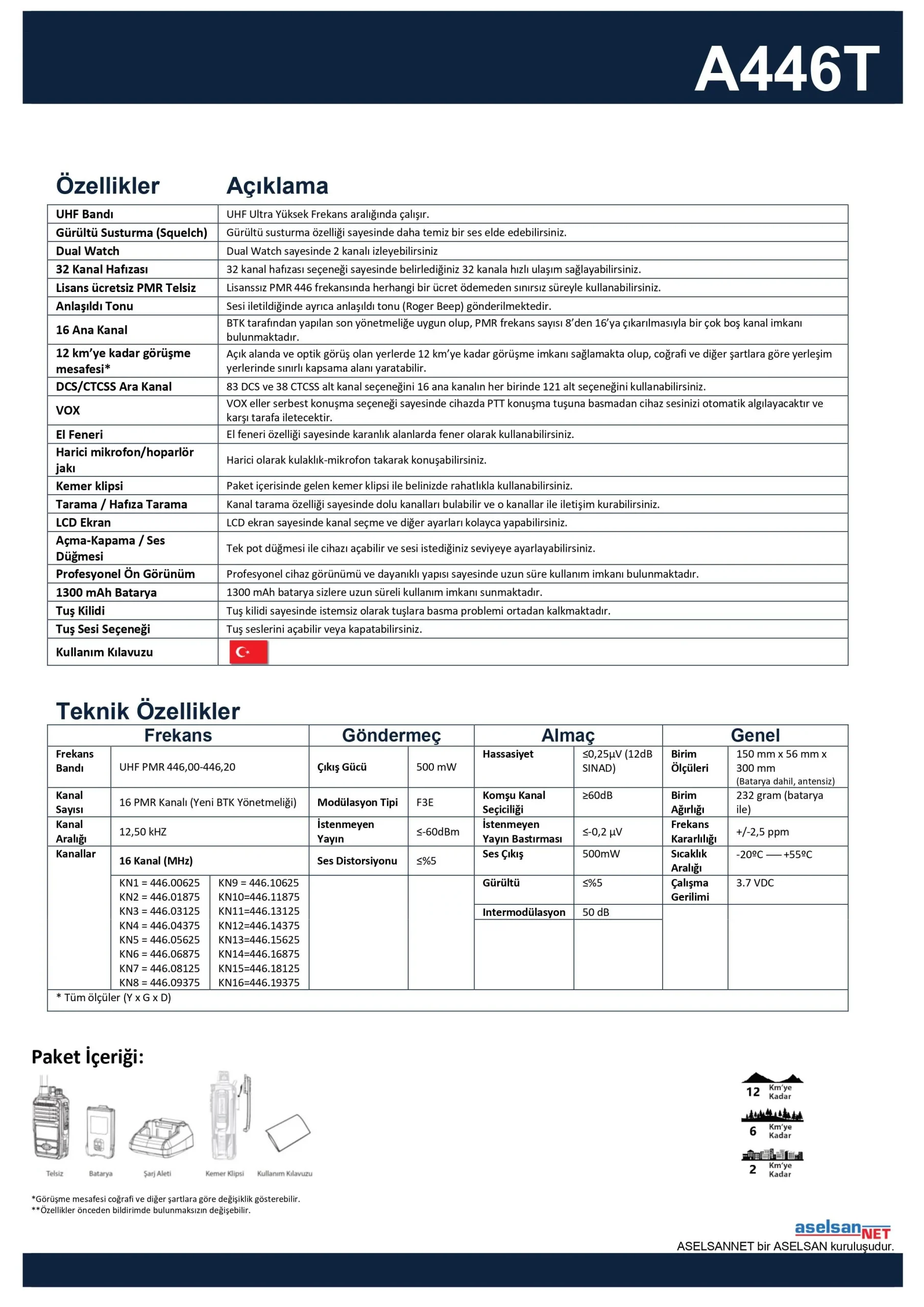 Aselsan A446T El Telsizi Pmr Pil ve Şarj Tekli Paket