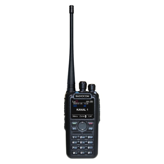 Radiocom DT-4000 DMR&ANALOG El Telsizi, hem dijital hem analog modda çalışabilen profesyonel modelimizdir. DMR Protokolüne uygun, tüm telsizlerle eş zamanlı çalışabilme özelliğine sahiptir. Telsiz, dijital modda çalışırken kriptolu haberleşme yapmaktadır. Dış ortamdan gelen anonslar aynı frekansta olsa dahi karışmamaktadır. Analog modda ise herhangi bir UHF(400-470 mHz) telsizlerle haberleşme yapabilir.